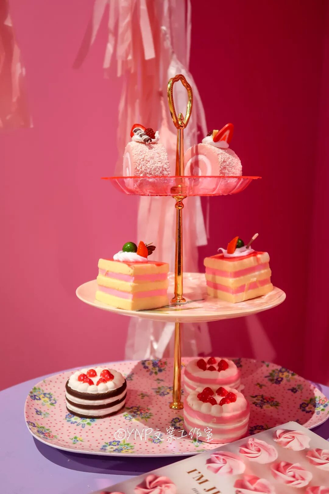 甜品区才是正宗的粉色少女心集合地!精致的cupcake,粉色大熊,可移动的氢气球,像走进了芭比娃娃的世界一样。