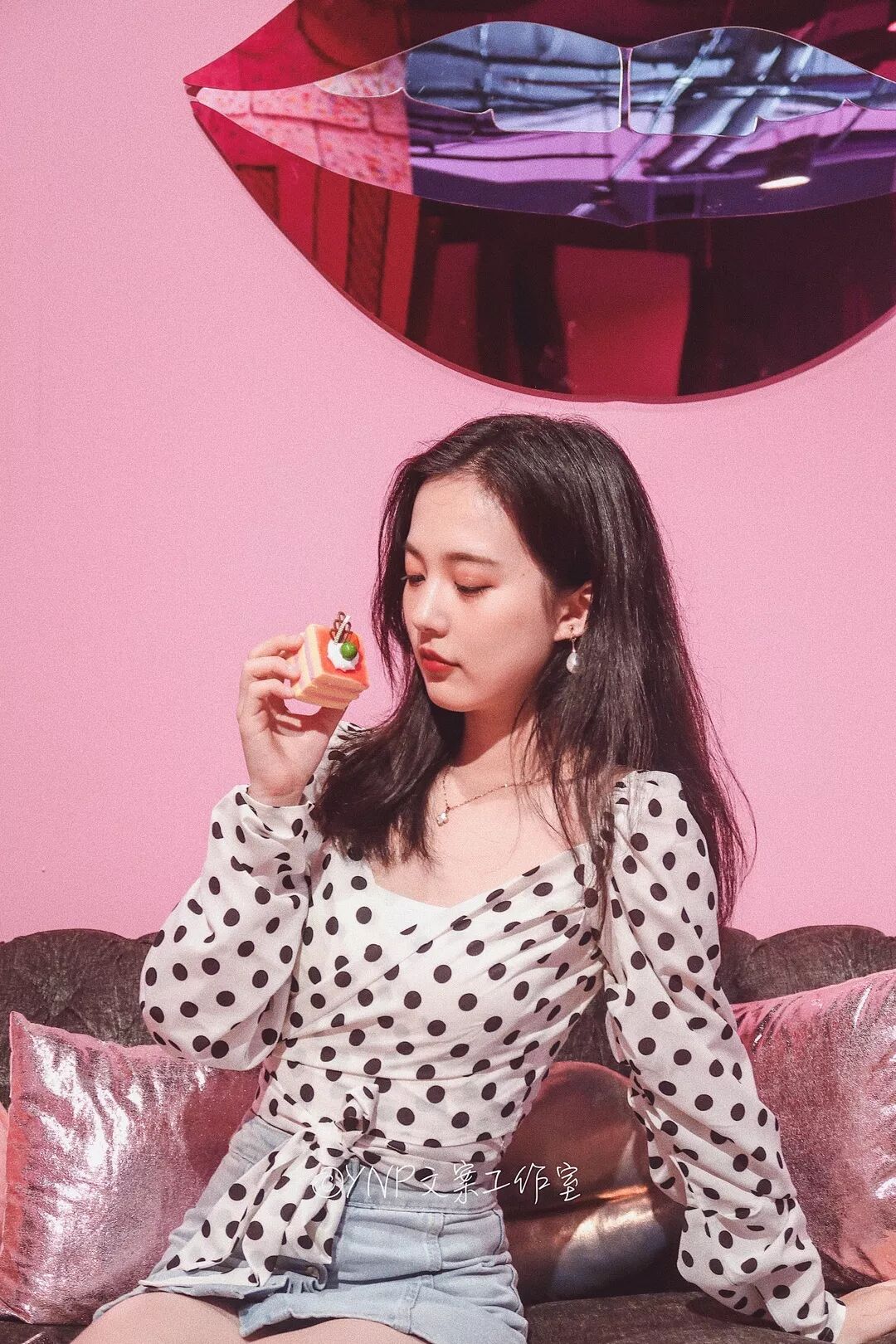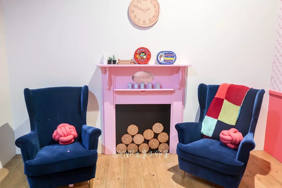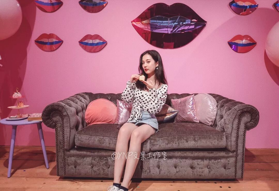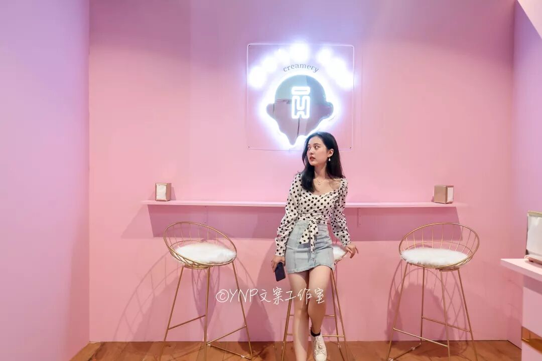 这块粉色背景墙出片的感觉也是超级给力,坐在cupcake上,感觉自己都化身小蛋糕啦!这的灯光也很柔和,随意低头的姿势,照出来都有一种温柔风~
