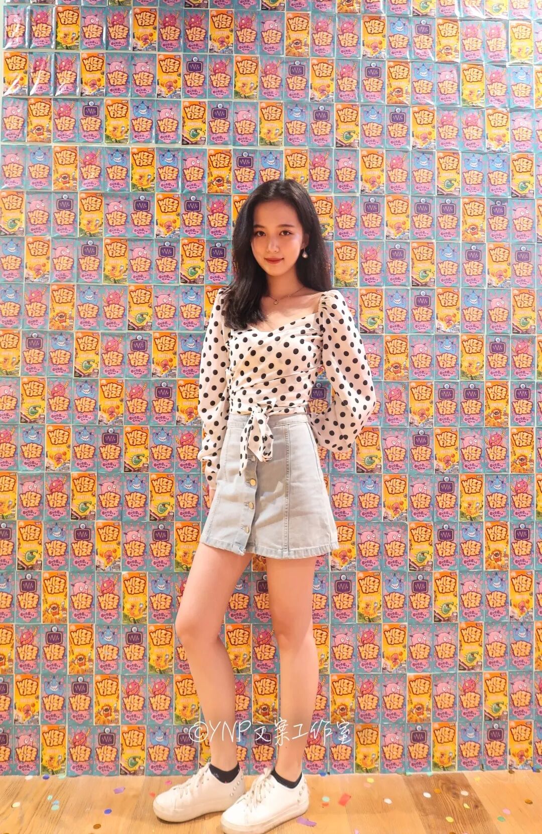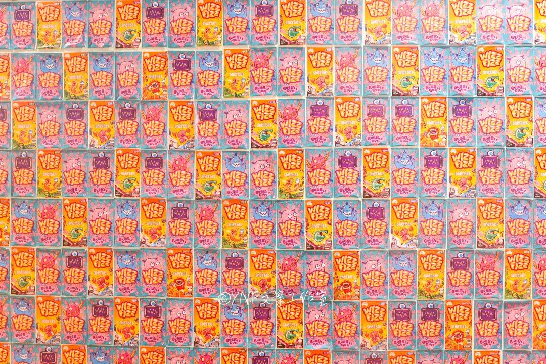 右半边的墙上贴满了BUBBLE Gum的糖纸,集齐所有口味可召唤美照一张!