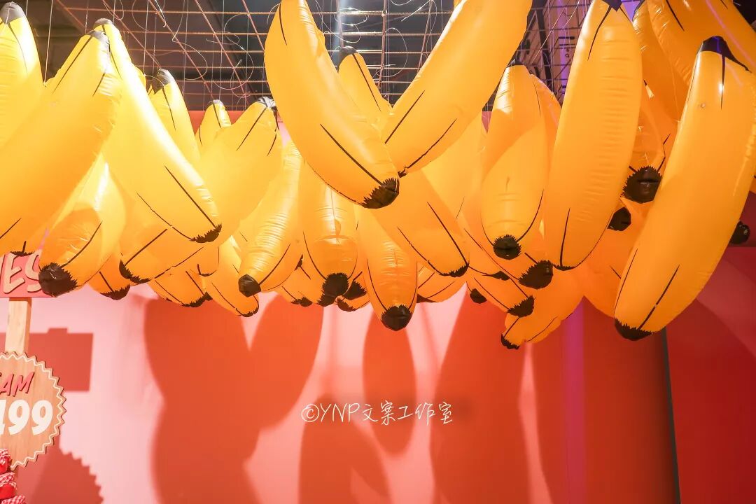 第一个房间,一进门就能看到几十个大香蕉挂在空中,还是满好笑的一个设计,几乎每个路过它的人都忍不住伸手戳一下。