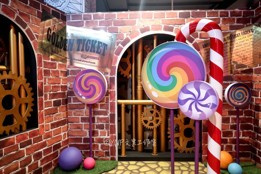 接下来是巧克力工厂配合棒棒糖主题,配合最近在capitol theater的全新《查理的巧克力工厂》音乐剧上演的宣传,在糖果缤纷感里注入了一些工业风,散发淡淡神秘感,让人更想到剧场去音乐剧里充满童趣的梦幻世界里去一探究竟!