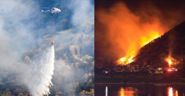 44°的高温助长着火势的蔓延,直升机一次次飞到长江取水又返回火场,可依然很难控制迅猛的火势。