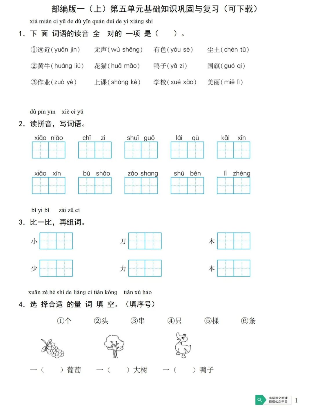 部编版一(上)第四单元字词专项练习