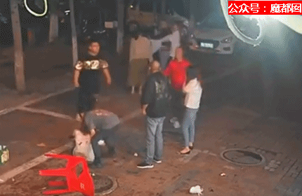 从另外一个视角可以清楚的看到,白衣胖子不仅爆锤,红衣男子还拿了啤酒瓶子砸,女生在一下酒瓶子砸脑袋后明显就不行了,站都站不住,倒在了地上。