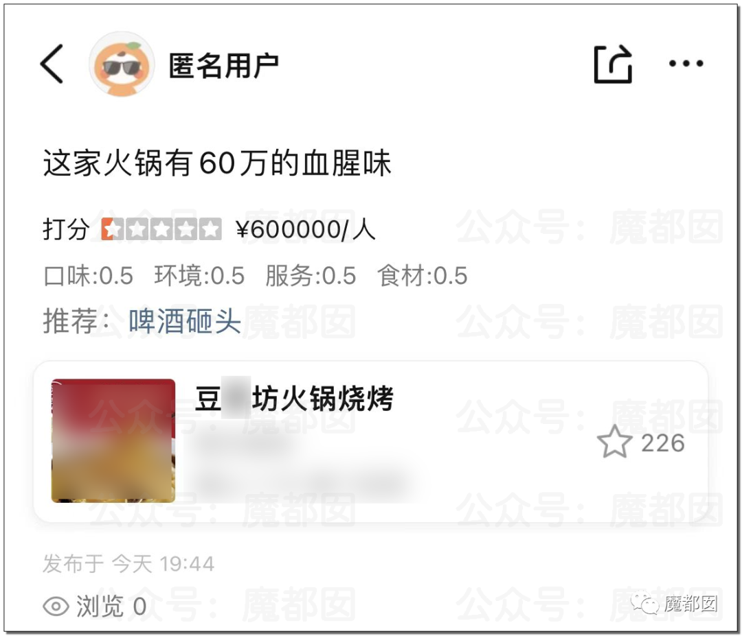 该店已经有人去打分。至于下面这个数字是源自于另外一个消息,从后续看应该是假消息。