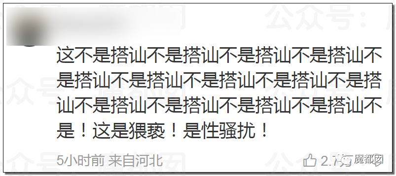 而我们看到数家官媒的措辞都是非常的奇怪,视频监控清清楚楚,怎么到了媒体的嘴里就减轻和弱化了?大家自己看这个用词,几乎没有一家媒体直接了当的说男方在骚扰女方。