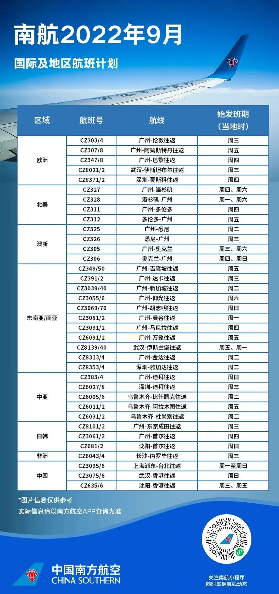 此外,中国国际航空、南方航空、厦门航空等各大航空公司近日相继发布9月国际及地区航班计划。具体如下: