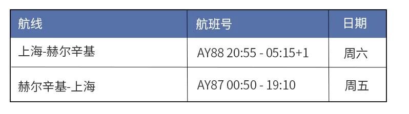 芬兰航空日前发布的2022年冬季中国航班计划,11月22日起,芬兰航空运营每周两次往返赫尔辛基机场(HEL)和上海浦东国际机场(PVG)的航班。