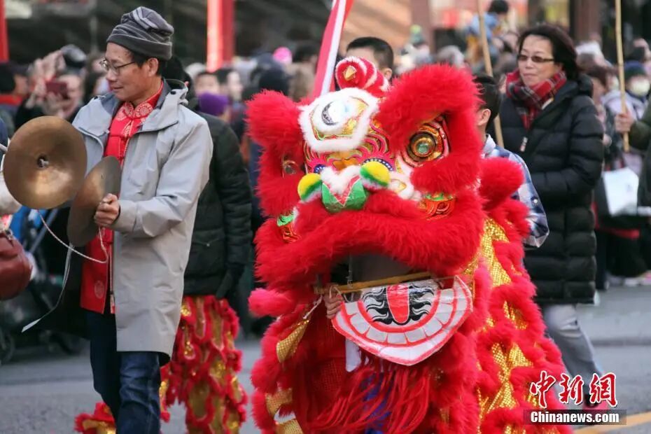 资料图:当地时间2020年1月26日,加拿大温哥华唐人街举行庚子鼠年华埠春节大游行。