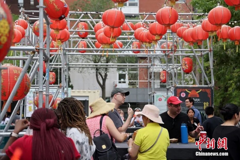 资料图:当地时间2022年7月30日,蒙特利尔唐人街举行亚洲美食集市,吸引诸多食客光顾。