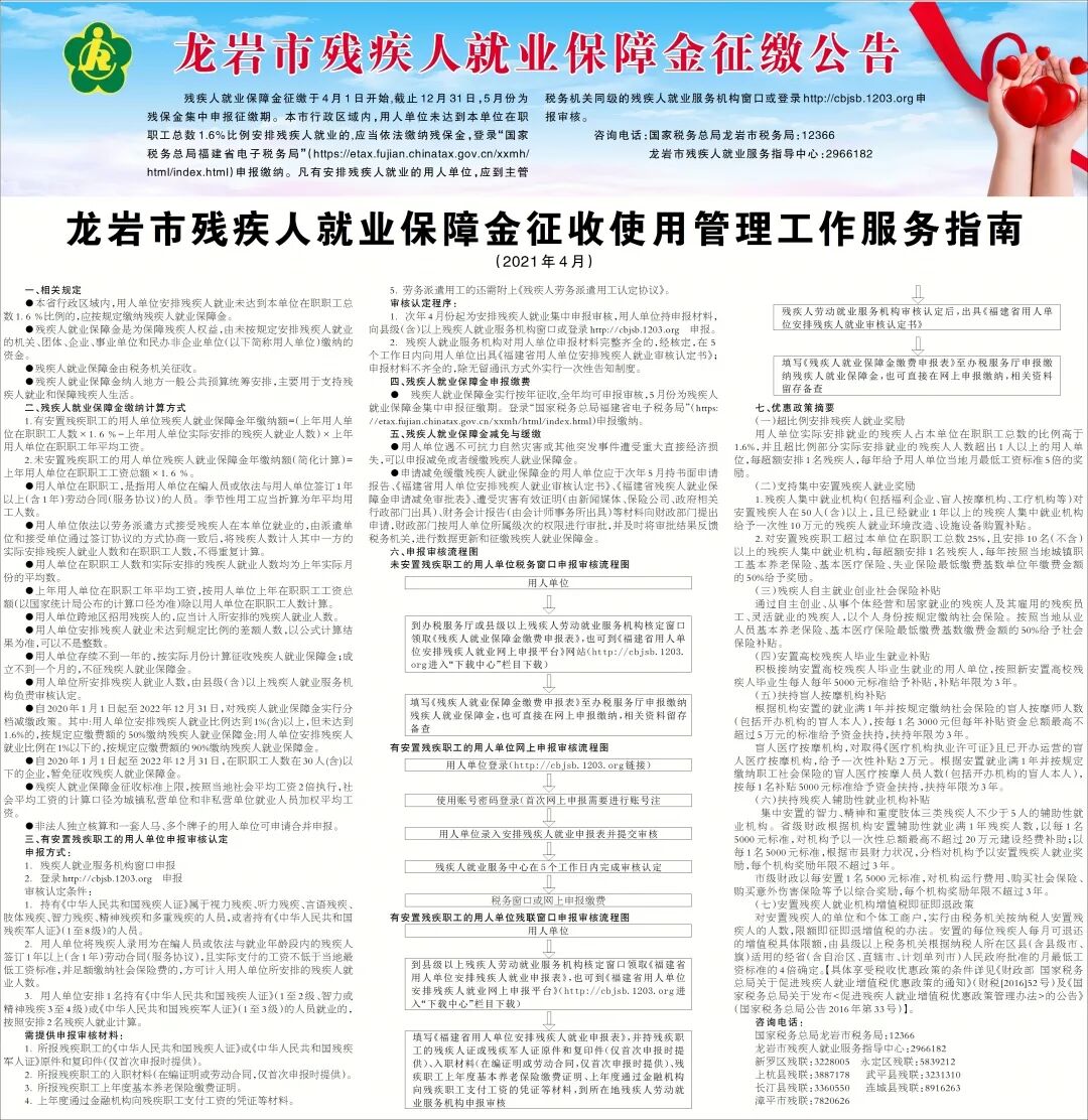 龙岩市残疾人就业保障金征缴通知