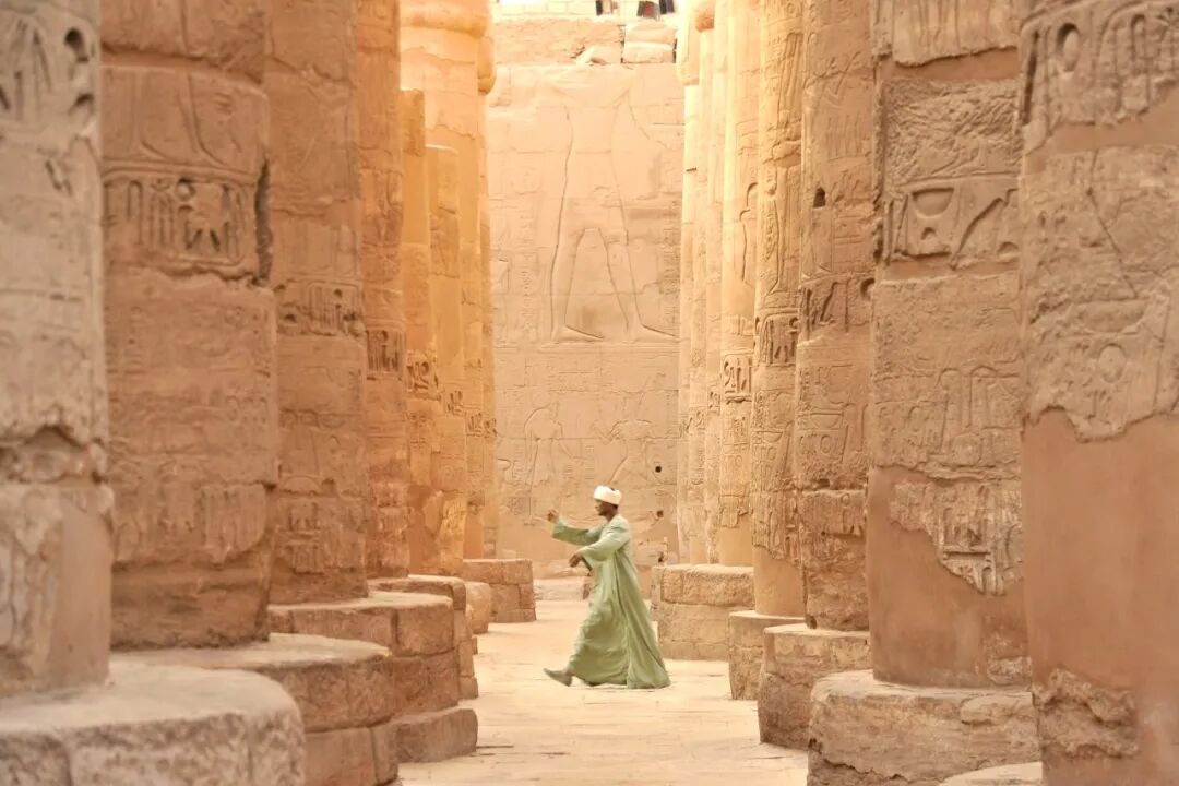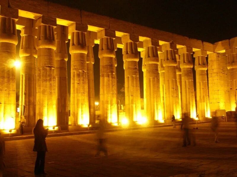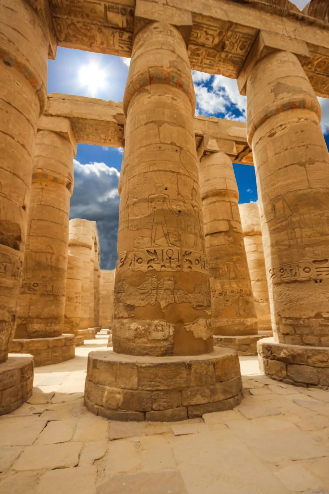 遗址占地2平方公里,足够容纳十余座大教堂。而其核心是恢弘的阿蒙-拉神庙(Temple of Amun-Ra),也是世界上最大的宗教建筑群之一,有著名的多柱大厅(hypostyle hall)——一片壮观的纸莎草形状石柱丛。