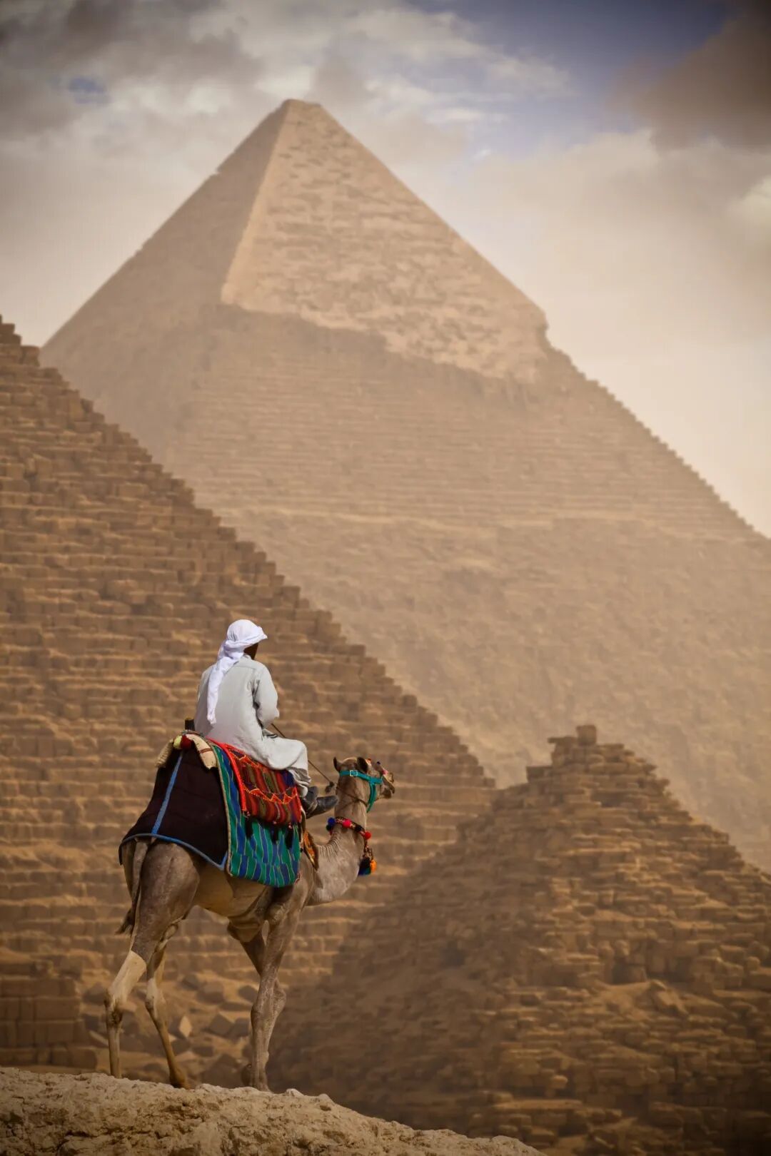 在金字塔附近唯一可以做而且总是不断被提起的事,就是在日落时分骑骆驼走沙漠,以雄伟的金字塔为背景,令人难忘。