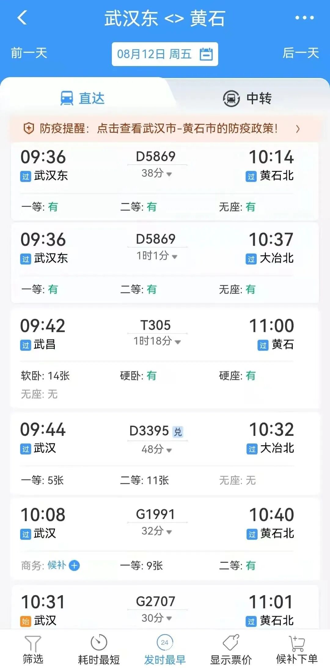 除明日首发C5627次列车外,其他车次信息如下:始发、终到列车7趟:武汉东至黄冈东C5627次、武汉东至咸宁南C5024/5次、武汉东至阳新C5525次、咸宁南至武汉东C5026/3次、阳新至武汉东C5526次、大冶北至武汉东C5512次、咸宁南至武汉东C5020/17次。