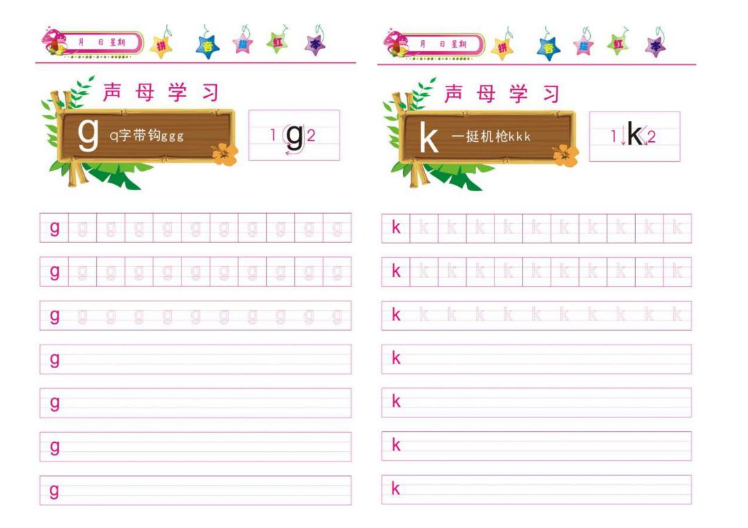 声母描红字帖表