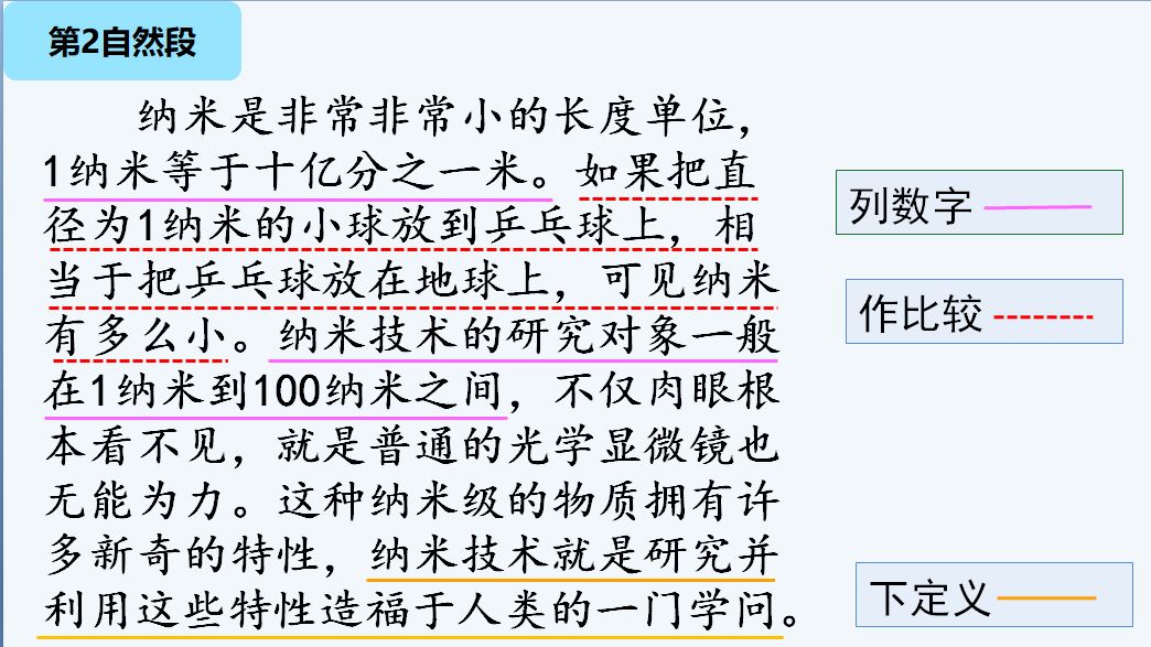 一、本文主题 这是一篇介绍纳米、纳米技术的科普说明文。作者以通俗易懂的语言向我们介绍什么是纳米技术,让我们知道了生活中就有纳米技术的影子,以及纳米技术对人们身体健康起到的作用,增进了我们对纳米技术的了解,拉近了我们与科技的距离,培养了学科学、爱科学的兴趣。