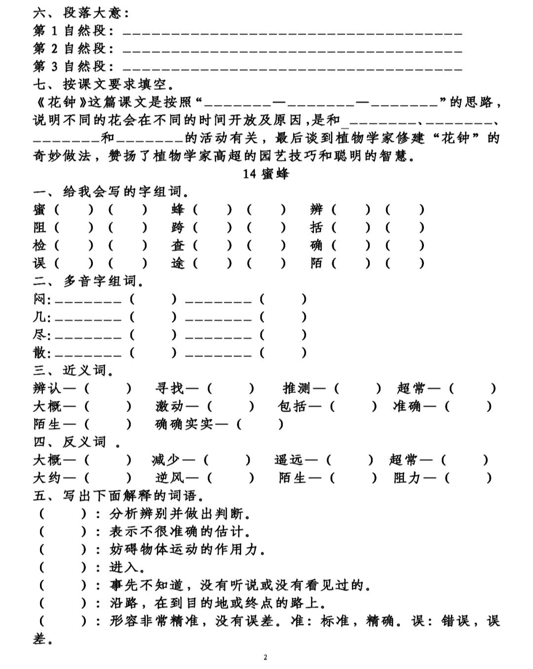 第一部分(1):写“我”想试一试蜜蜂辨认方向 能力。