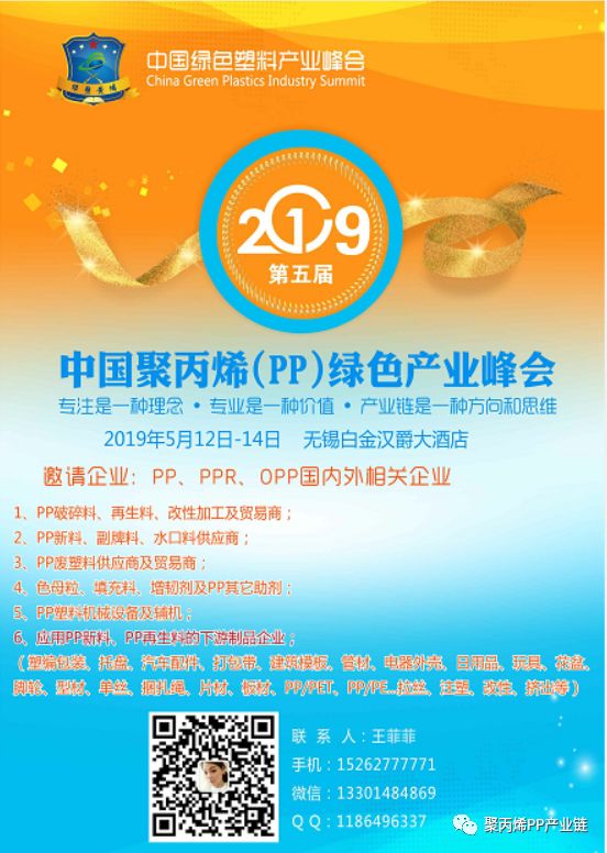 诚邀共聚【2019年5月12—14日】于【无锡白金汉爵大酒店】举办的【第五届中国聚丙烯(PP)绿色产业峰会】!