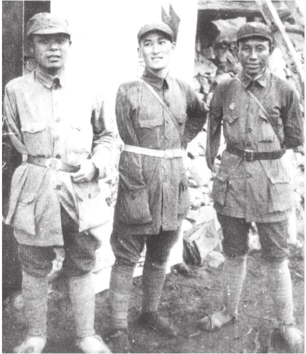 (图:1939年,晏福生、左齐和彭清云在三五九旅祝捷大会上的合影。)