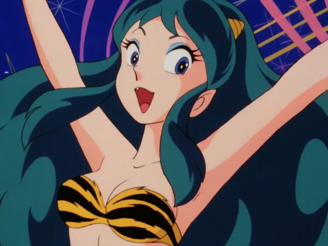 拉姆给人人像最深的就是她的虎皮比基尼装扮,连鞋子也是一体的。她是鬼星球的公主,所以头上长了两个黄色的小角,青色的头发。