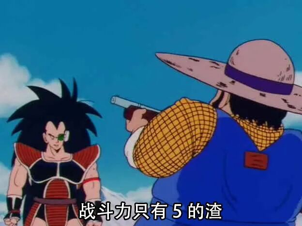 这个梗已经流传了很多年,出自鸟山明的漫画《龙珠》,卡卡罗特的哥哥弗拉蒂兹作为弗利萨的手下来到地球,走下飞船后见到的第一个人是农夫,战斗力探测器上显示的数值为“5”。