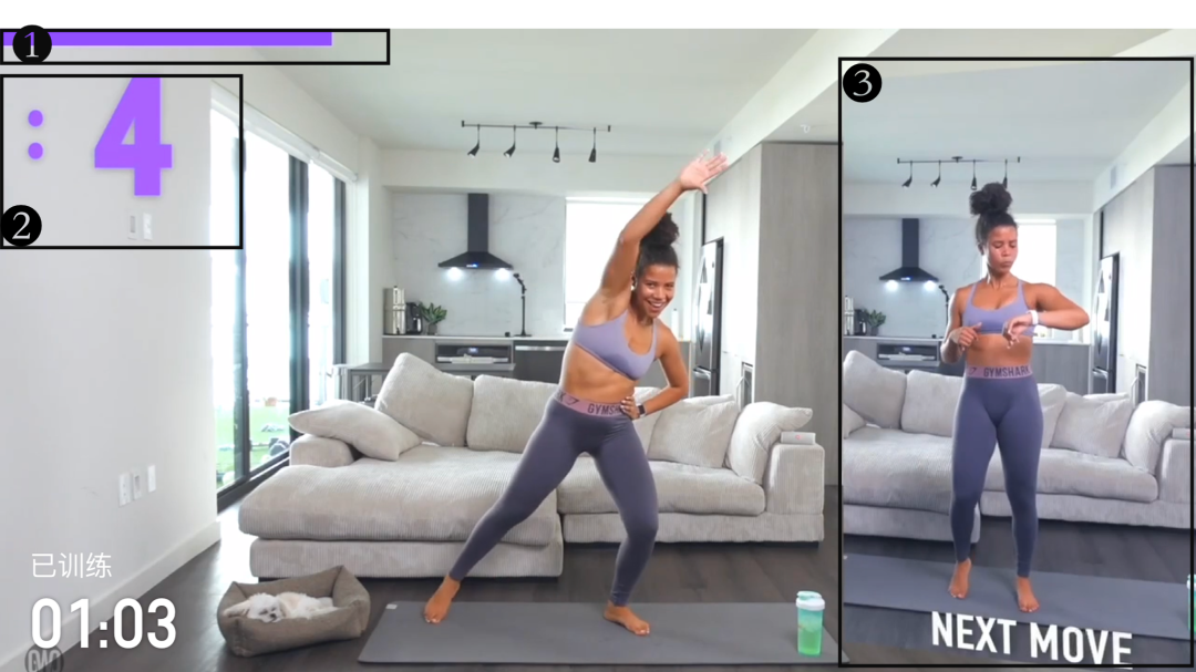 ❷ 动作倒计时,可以掌握动作变换的节奏