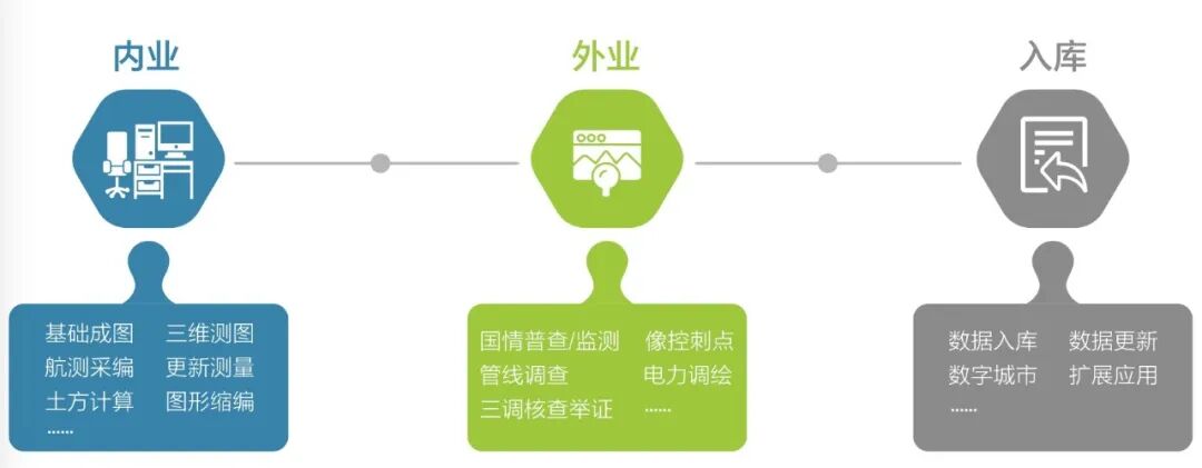 应用方向:地形成图、地籍测绘、管线普查与竣工、工程应用、地图缩编、市政规划、数据建库更新、数据质检评价、规划核实、 国情普查与监测、航测像控刺点、电力调查、国土三调、矿山调查、地名地址调查、测绘教育、二次开发。