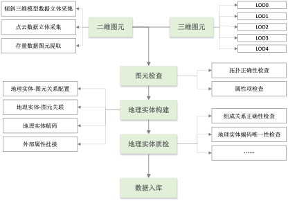 实体构建。地理实体数据将采用面向实体的构模方法,以图元(空间数据库中表达为点、线、面、体)为数据的构成单元。一个地理实体由一个或多个图元构成,可挂接社会经济及各类专题信息。