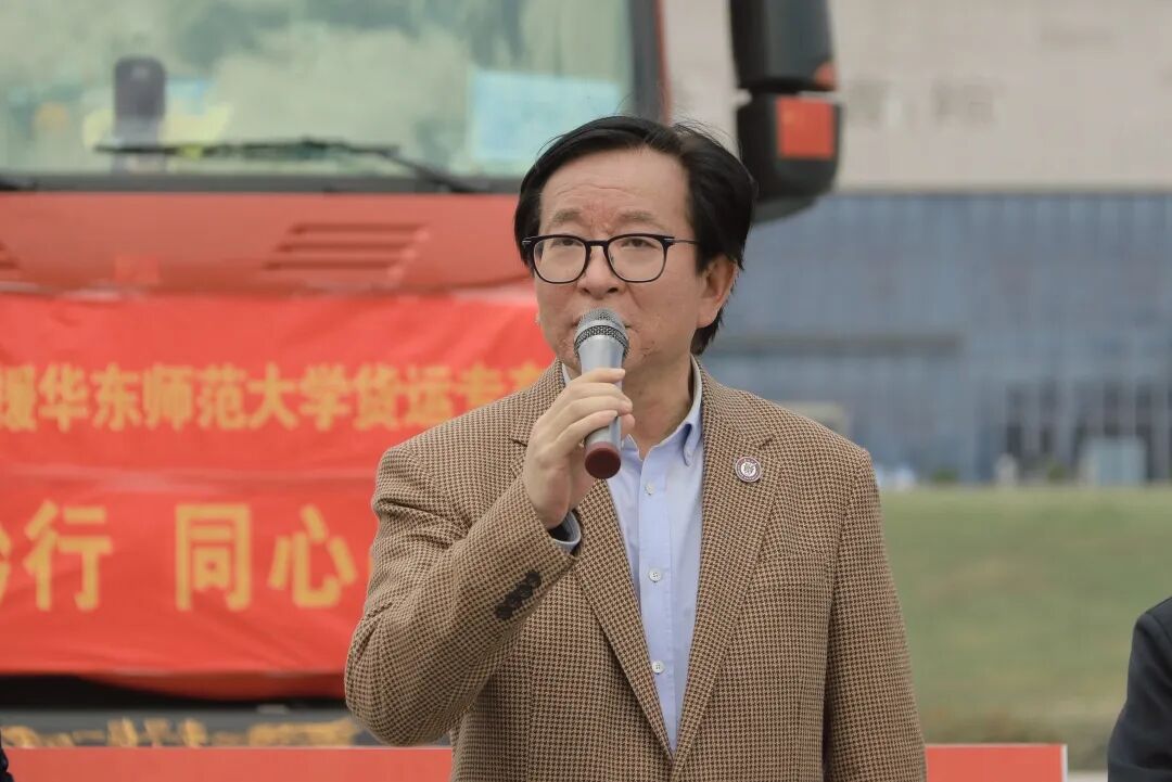 校党委副书记令狐彩桃,副校长李军旗、周傲英,我校产学研合作企业家代表,承担本次运送任务的公司负责人出席仪式,我校相关职能部门负责同志、华东师范大学校友代表、交换生代表等参加仪式。
