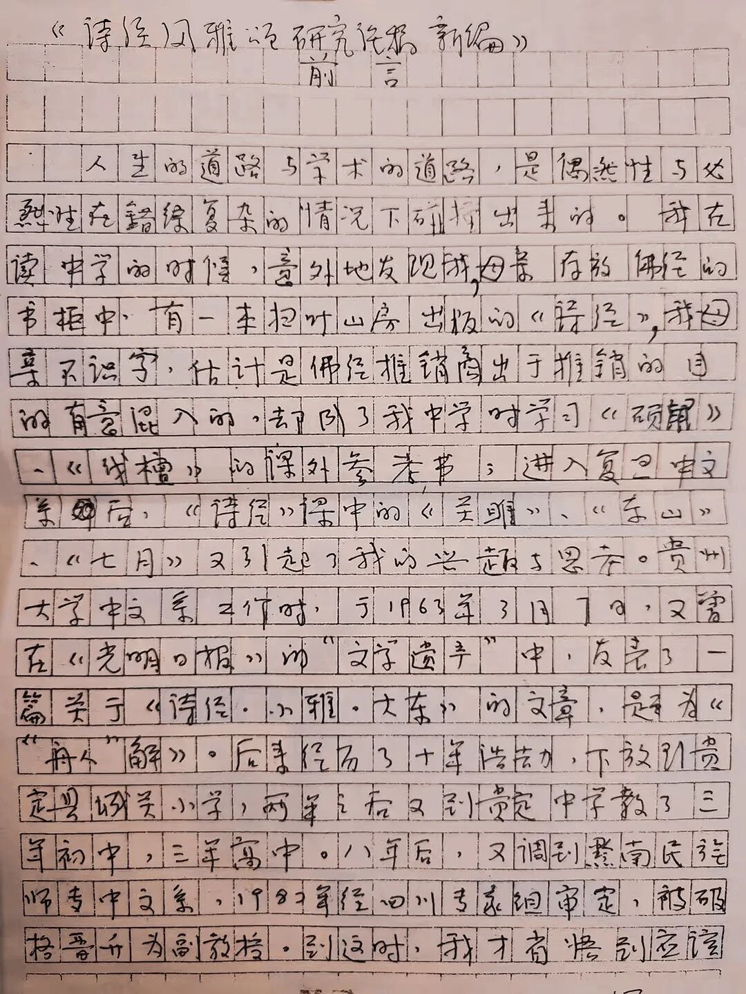 那时候,学术研究是我们最初的理想。张老师温和而有力量的带有上海口音的普通话就那样一天天的留在贵大逸夫楼的教室里,长久地回荡在学子的心里。他给我们讲授《<诗经>与<雅歌>的比较》《明代<诗经>学的新气象》《论两汉非经学研究的萌芽》《试论<郑风>的情歌》,其中很多论文和观点发表在《光明日报》《文学评论》《复旦大学学报》《北京师范大学学报》《文史哲》《学术月刊》《贵州文史丛刊》等刊物上。