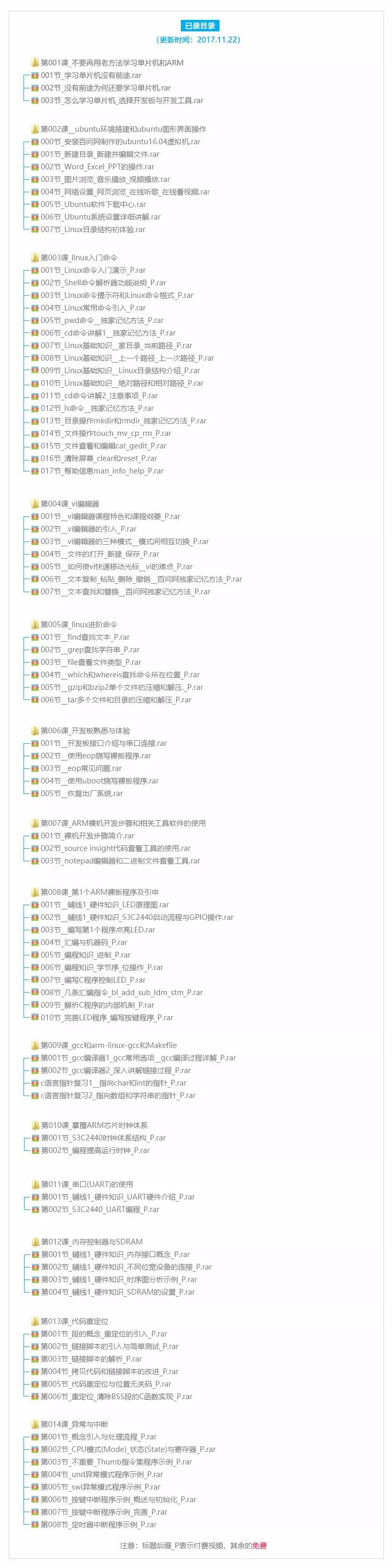 ->005_ARM裸机1期加强版其中标题后缀"_P"是付费课程,其余的是免费试看。