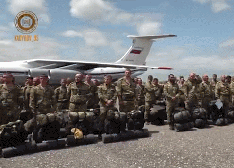 ▲在车臣接受训练后的“志愿者”部队,出发前往乌克兰