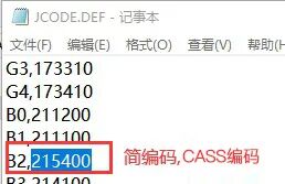 打开简码文件JCODE.DEF,确定每个中文简码对应的CASS简码。
