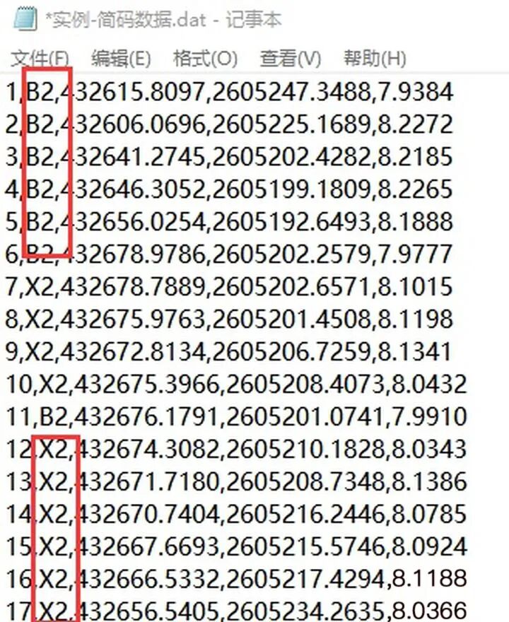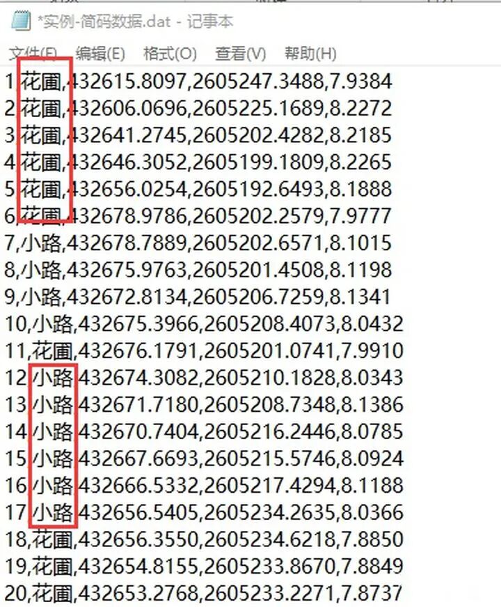呃,CASS已经服务测绘同行们小三十年了,如果不能提高工作效率,那早就应该销声匿迹了吧。既然看视频教程没搞明白,那就来个一对一辅导吧。这个小伙伴提供了他自己辛辛苦苦采集的坐标文件。下图这种,坐标文件第二列写的居然是中文!下面说说怎样搞定这类简码文件的快速成图。