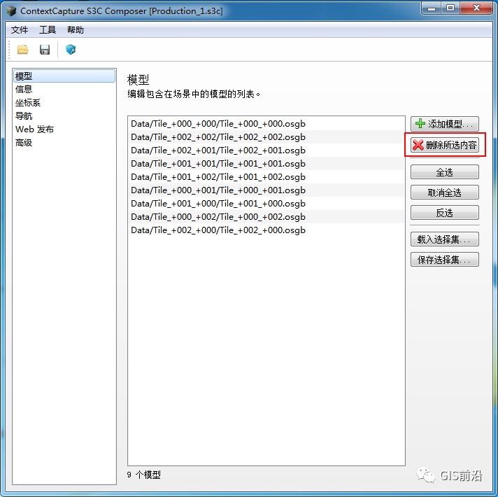 打开后,将模型列表中之前工程所有的.osgb文件全部删除