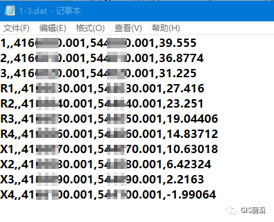 我们手上有如下三个dat文件,分别打开后发现文件格式不是cass默认展点格式“点号,编码,E,N,Z”。