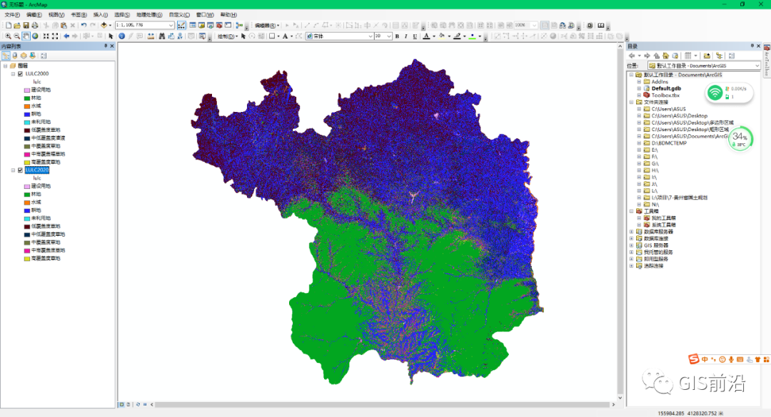 首先打开ArcMap10.5,添加数据延安市2000年和2020年土地利用基础数据。