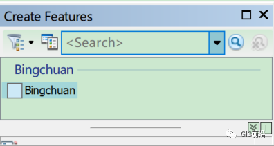这时候内容列表出现了这个图层“Bingchuan”,但是是空的,我们打开编辑器开始编辑,点击创建要素按钮,在新打开的界面点击“Bingchuan”鼠标就变成了十字架后就可以进行矢量化了。