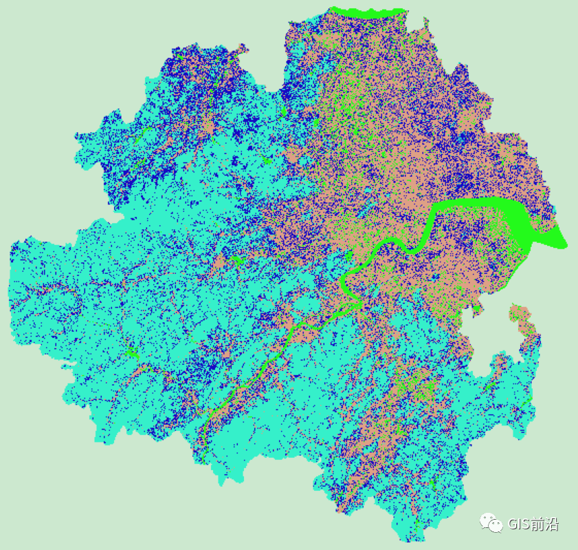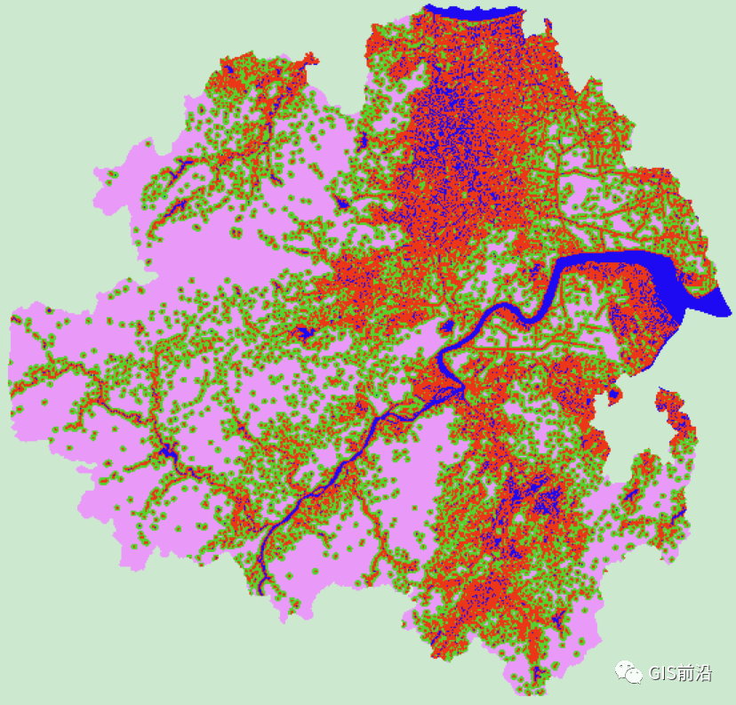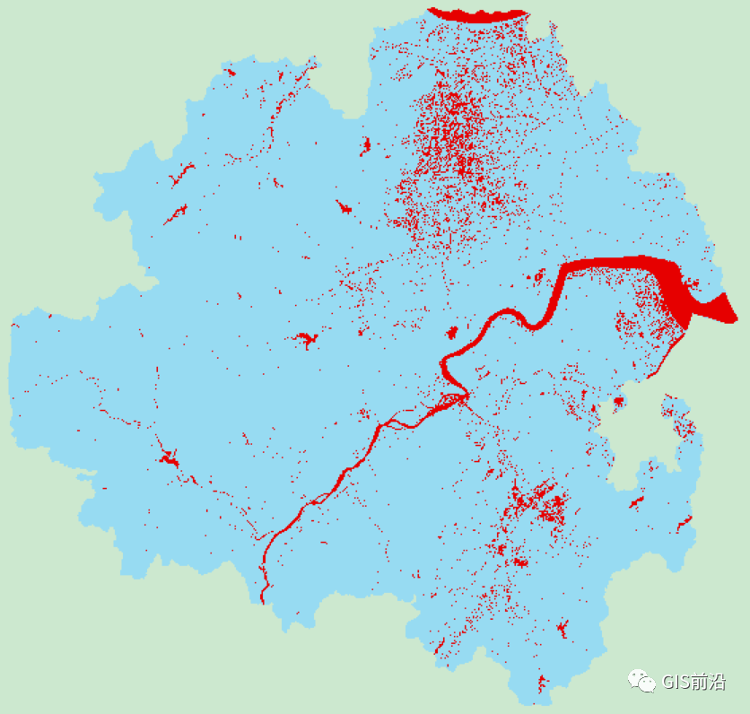 接着使用【空间分析】|【提取分析】|【按掩膜提取】将在研究区范围内的水域提取出来即可,最终水域提取范围如下图红色区域所示: