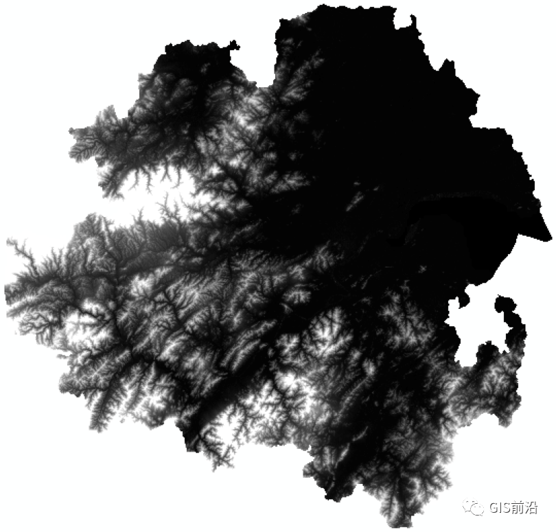 由此可知像素类型选择为:有符号整型,像素深度为:16位,波段数选择为1,最后注意保存路径上面不要有中文和特殊字符,点击确定即可。接下来我们添加那个研究区范围数据,由于研究区范围是镶嵌后栅格数据里面的一部分,所以涉及到栅格的裁剪我们都会使用到【空间分析】|【提取分析】|【按掩膜提取】,将研究去范围内的dem数据提取出来。