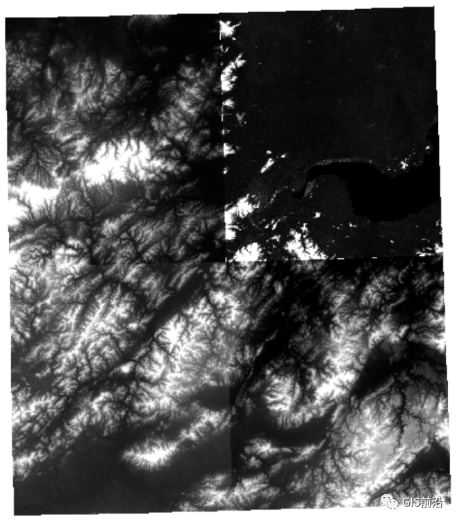 我们将文件夹里面的4景DEM数据添加进来,这时候我们想到就是要将这4景DEM图像合并。