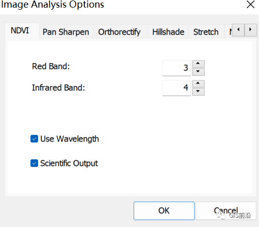 这时候还不行,因为这时候计算NDVI的按钮还是灰色的,我们还要在该工具中的数据列表中选中3、4波段,如下图所示: