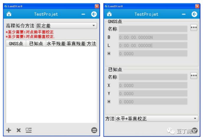 【添加】:增加校正点点对,GNSS 点和已知点,并选择方法水平,垂直或水平和垂直。