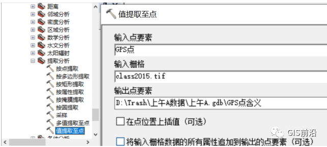 很明显的,我们的点已经有了,那么class2015.tif我们也是有的,这一步其实非常简单,我们需要用到值提取到点工具!