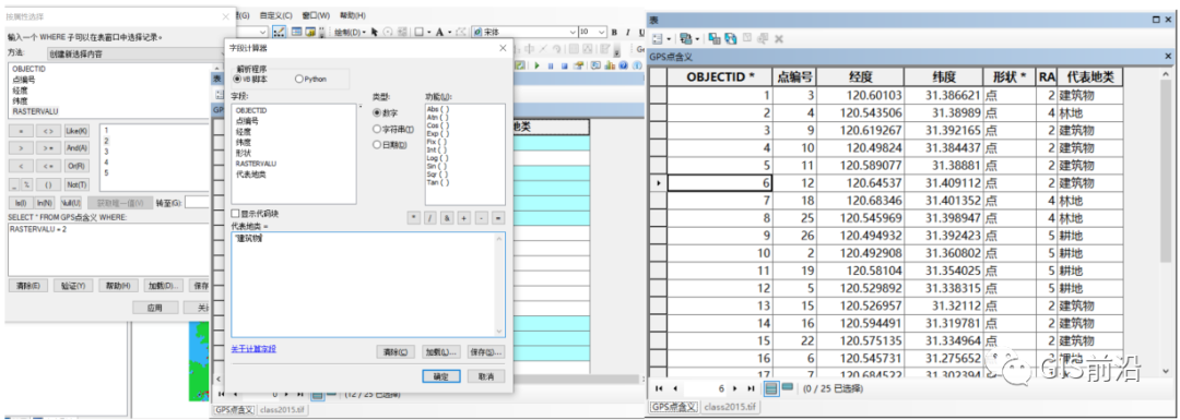那么很简单的,此时我们先提取出第五步要求的2010年是林地/耕地,并且2015年变为建筑用地的区域,按属性选择,然后导出为“耕林至建筑”: