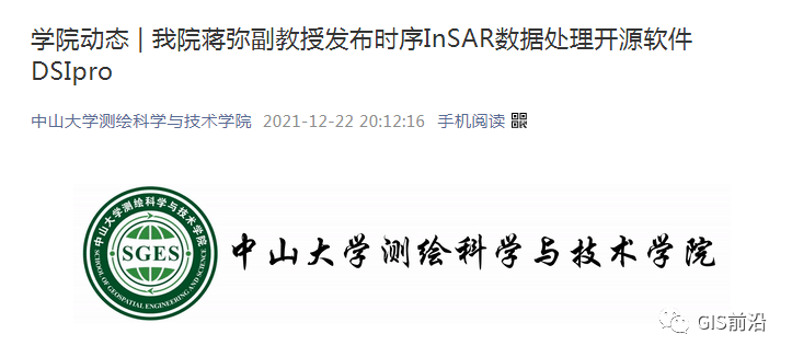 近日,中山大学测绘科学与技术学院官方公众号公布了中山大学蒋弥副教授发布时序InSAR数据处理开源软件DSIpro,并公布了源代码。