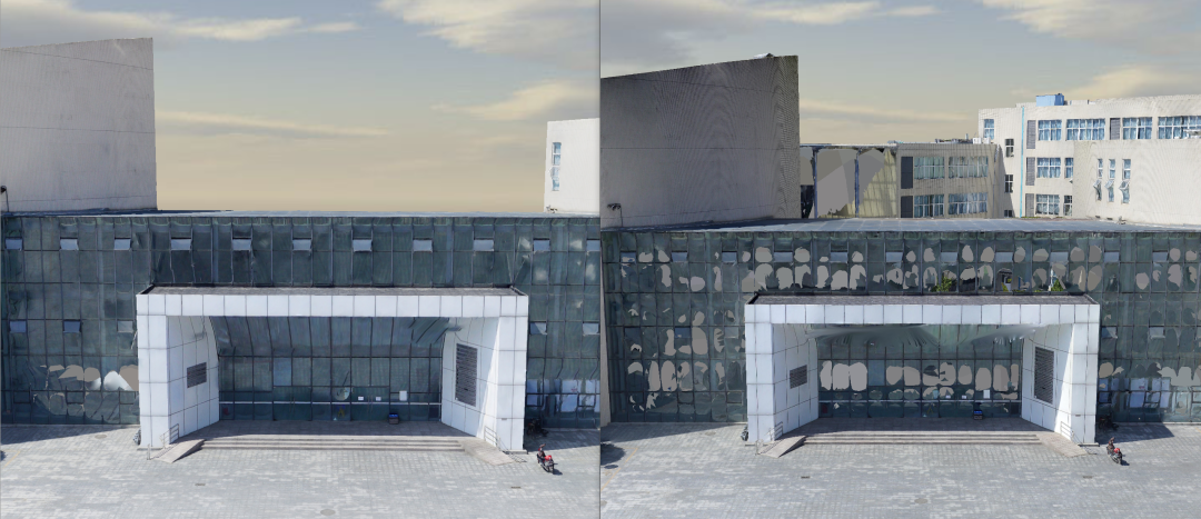 瞰景Smart3D(左)与DJI Terra(右)玻璃面效果对比