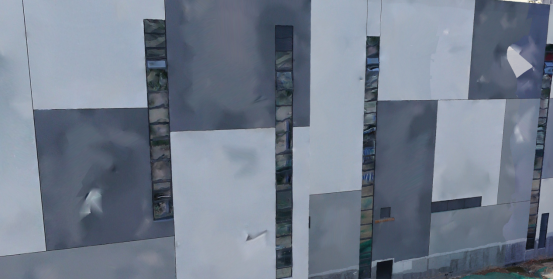 A:与上述水面破洞类似,大面积纯色墙面特征点较少,软件空三时很难提取到特征点,导致输出模型的墙面破洞或凹陷。
