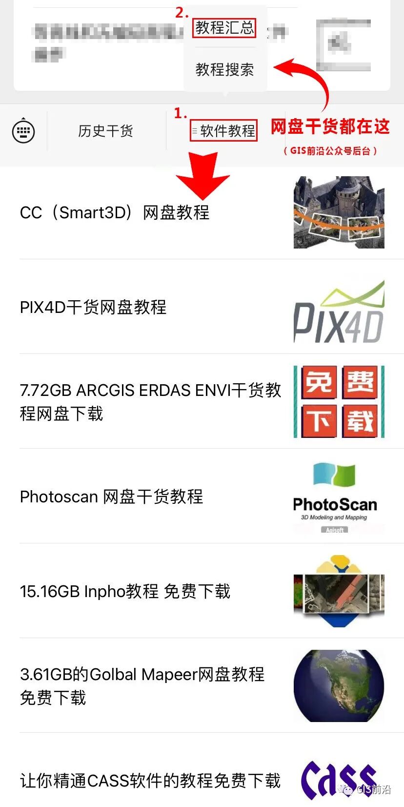 内容还是工作中我们常用到的一些软件汇总,ContextCapture(Smart3D),Pix4D,Photoscan,ArcGIS...还有各种数据下载,坐标系转换教程等等。
