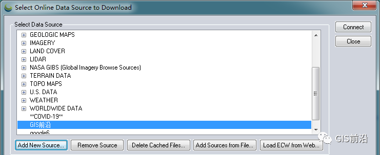所以,今天我们就来看看Global Mapper中如何加载并下载谷歌影像。在Global Mapper中除了一些自带的图源,你可以添加新的图源链接。点击Add New Source..选择OSM→点击Connecthttp://gac-geo.googlecnapps.cn/maps/vt?lyrs=s&x=%x&y=%y&z=%z